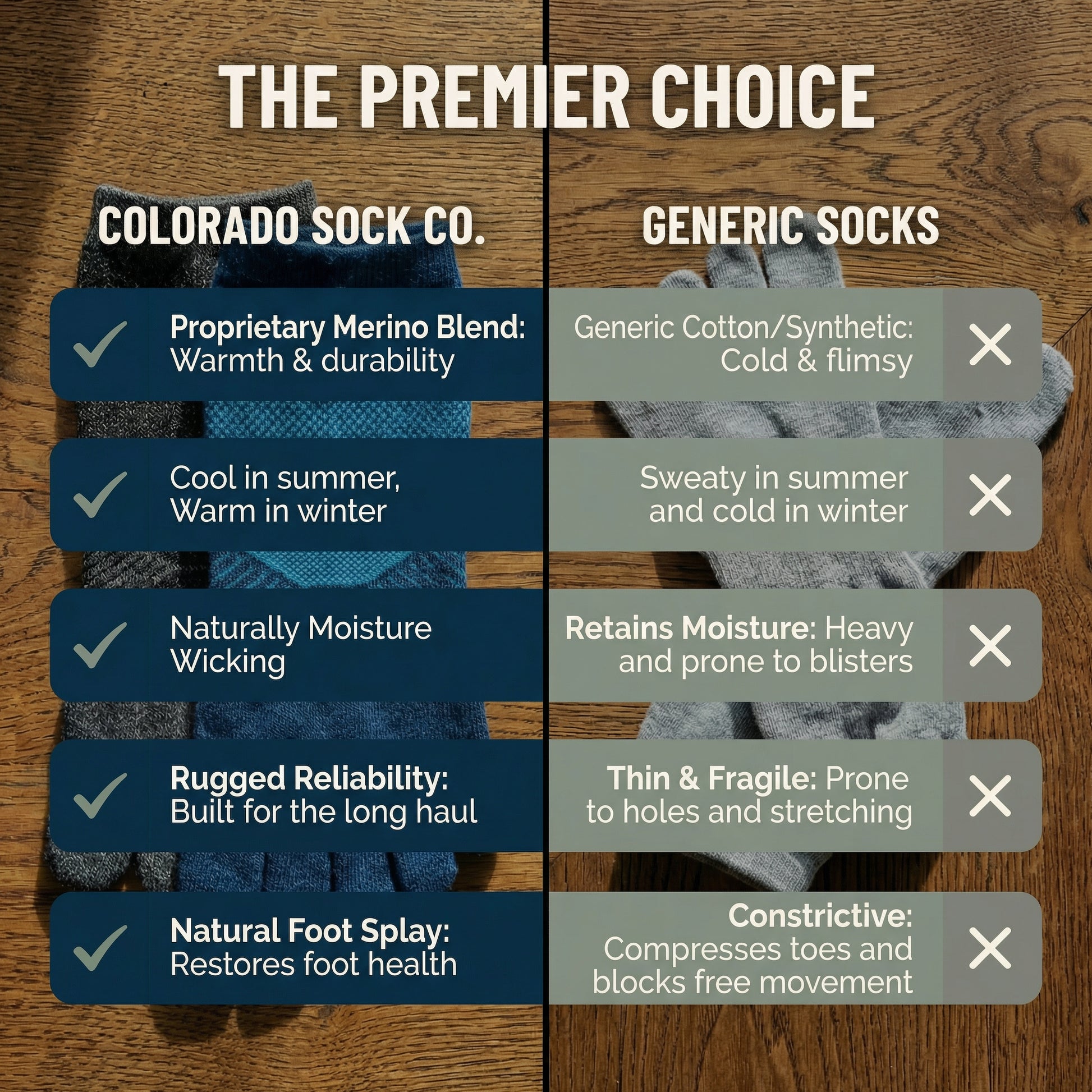 Needed soft, odor-preventing toe socks to help correct overlapping toes. Colorado Socks Delivered! These are a super soft wool blend; fit true to size. Colors are lovely and accurate to the image. Excellent customer service when I had additional questions. Would def buy again.Wearability:very comfortableThickness:just right for protection against chaffing, but not too thick.Shrinkage:Followed instructions before wearing. Did NOT shrink.Warmth:Enough wool %age for both warmth and breathability, even in warm weather.